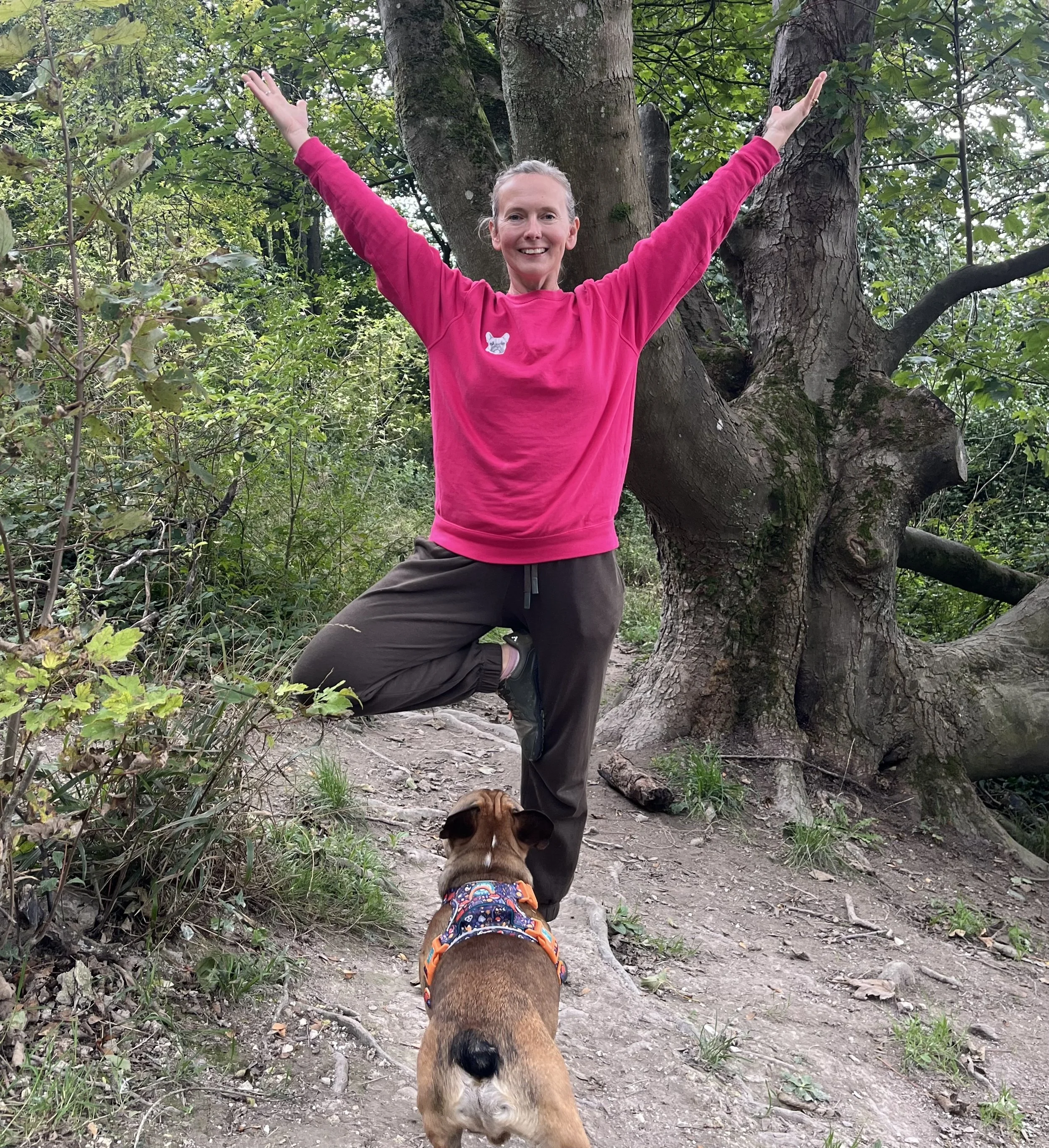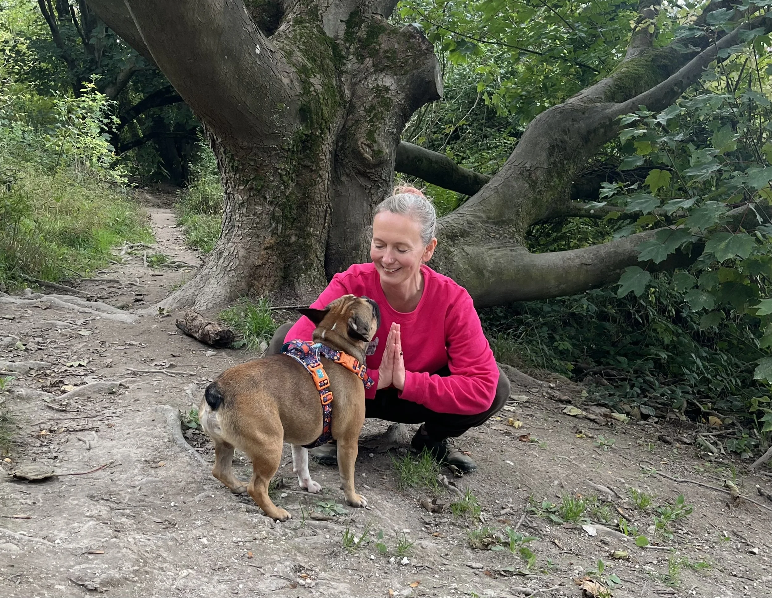 Not everyone can squat, so only enjoy if available in your hips, knees and ankles. I share variations of this inside the Yoga, Movement & Calm for Dog Parents online course.